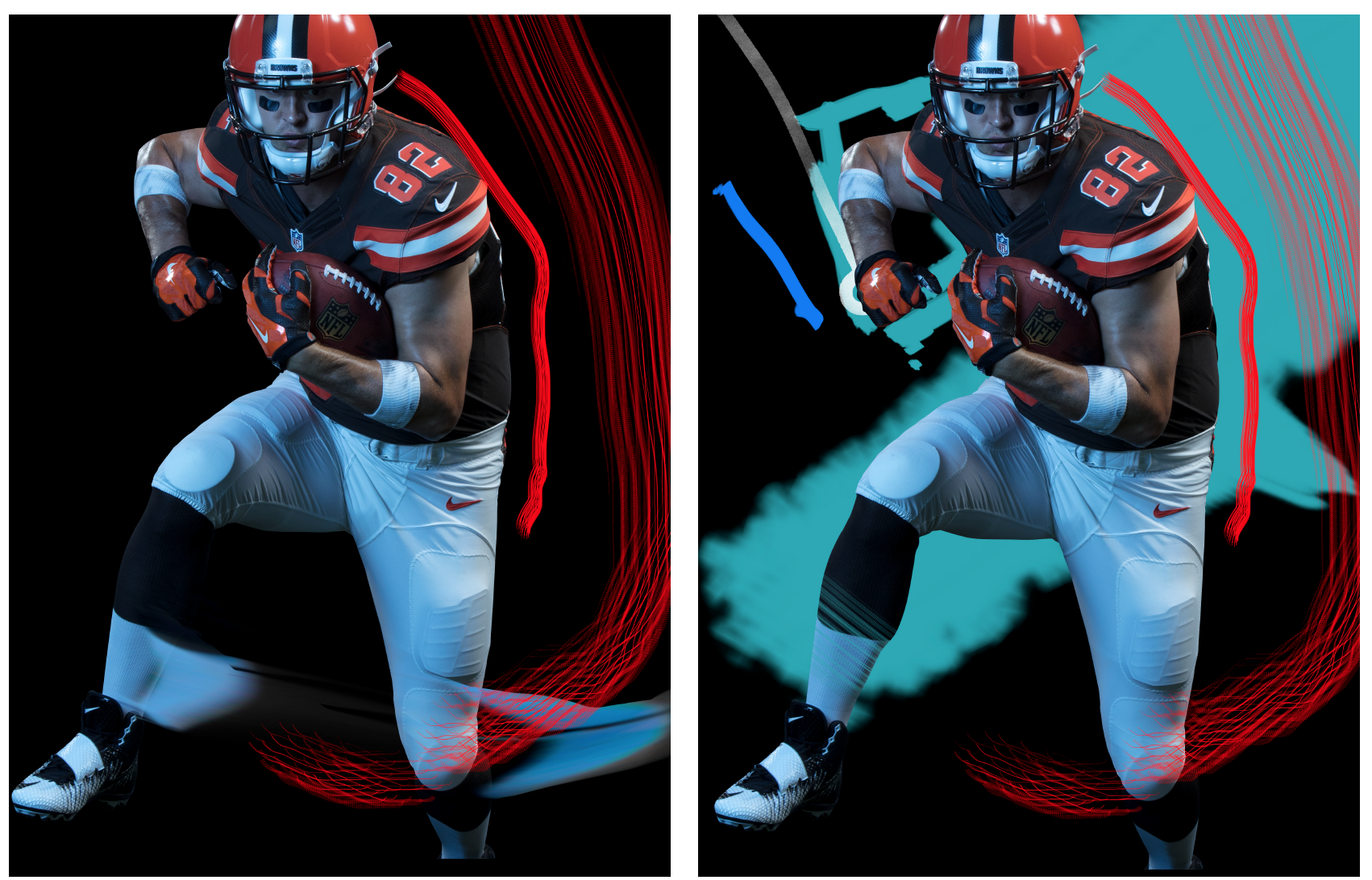 As part of Nike's NFL partnership obligations, we were required to allocate a specific budget annually to promote our new products while also generating excitement around the latest NFL uniforms provided by Nike. This marked my inaugural million-dollar campaign as lead designer, tasked with delivering top-tier creative while adhering to the parameters set by the NFL partnership, NFLPA, Nike product guidelines, marketing strategies, legal considerations, and leadership directives.